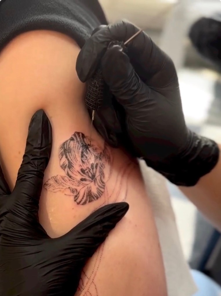 This method of tattooing is like the analogue version of machine tattoos- it has a slower pace, lack of noise or vibrations from the machine and some people find this method of tattooing more manageable to recieve.